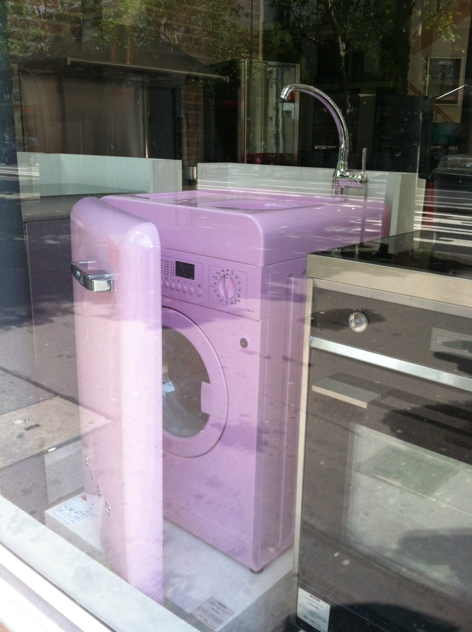 Our next task was to reactivate my French cell phone, which required finding an Orange (the service provider) shop. We knew there was one at Les Halles, formerly a central marketplace in Paris and now a large underground shopping center, and we set out on foot. On the way, we passed an interesting appliance store. Parisian apartments are very small because of limited space, so the appliances must be small as well, and are often multifunctional.