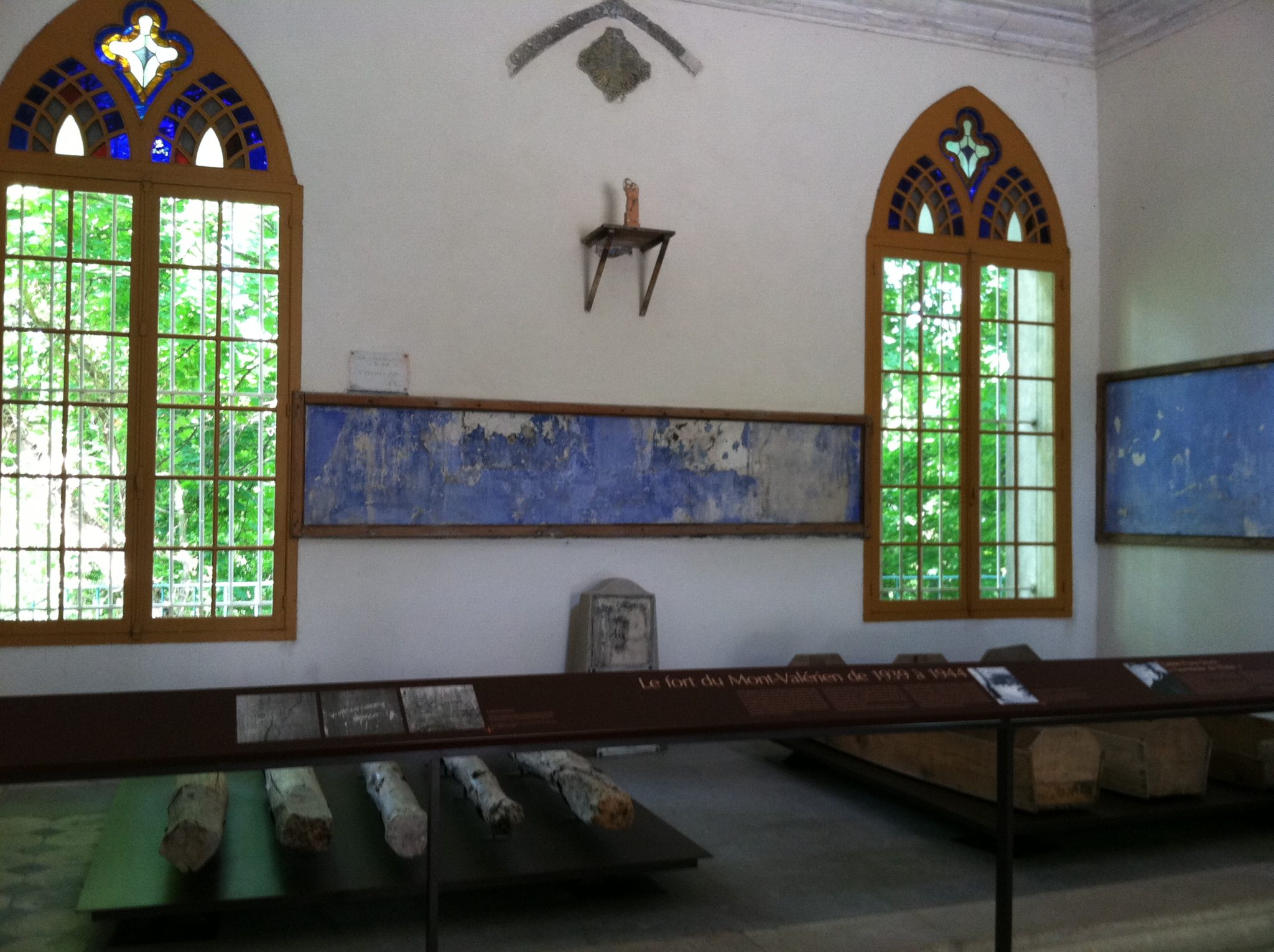 The museum held a lot of interesting information such as about how the Germans put a V for victory on the Eiffel Tower to try to deter the Resistance. The one thing in there that made this fort very eerie to be in was the last letters the victims sent to their families. Out of the 1,009 people executed there, they have 19 of these letters on display. As one of the letters was read you could hear the emotion behind the words, and I couldn’t even imagine how hard it would be to have to write something like that. The next thing was the church right by the museum that was called the “antechamber of death.” It used to be used for mass but during the Occupation they used it to hold the prisoners for up to eight hours before their execution. On the walls are still traces of the messages some of the prisoners left before their execution. It was fascinating but at the same time surreal to see something like that.