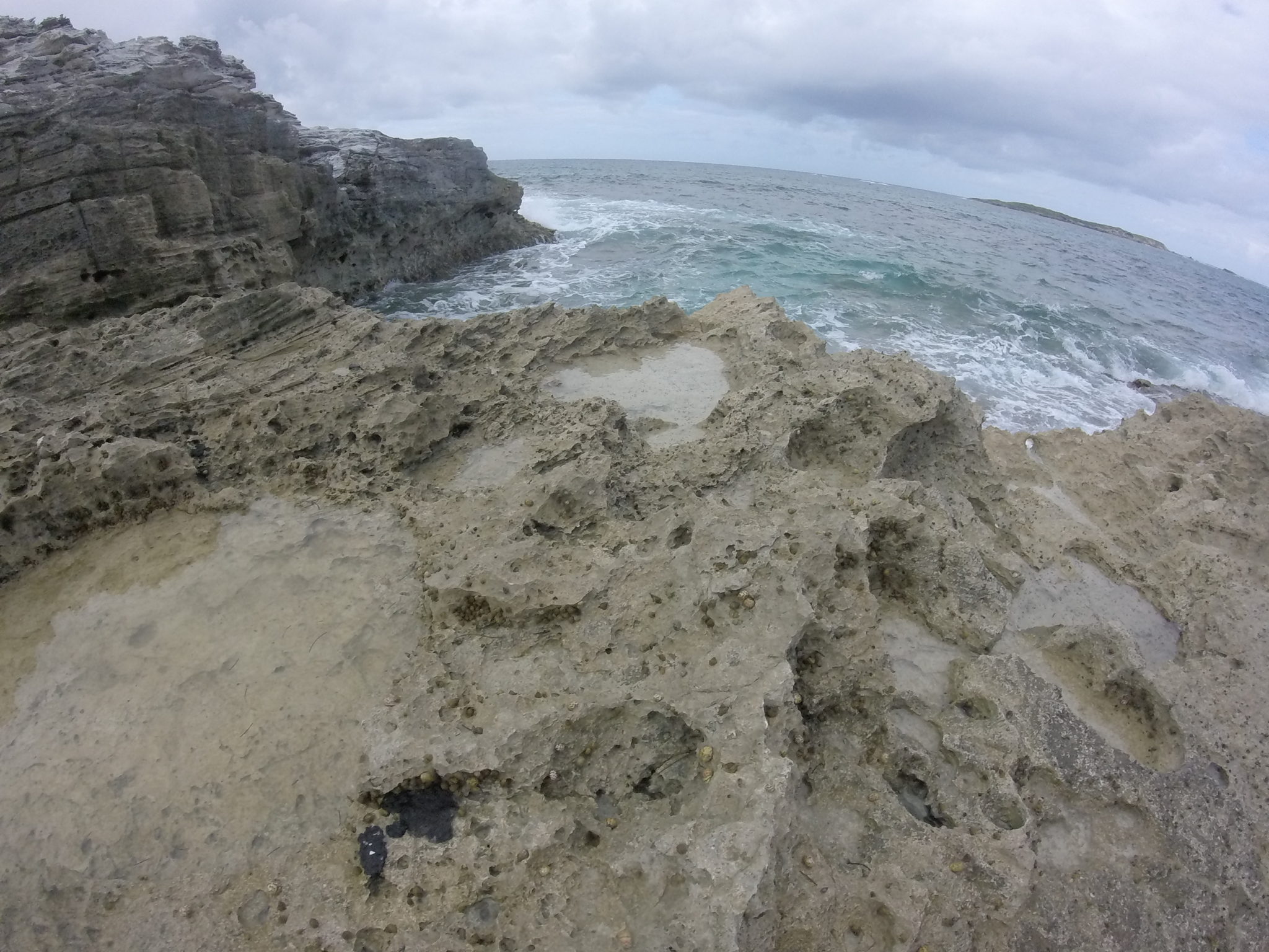 After catching our flight from Nassau to San Salvador, we finally made it to the Gerace Research Center, where we had a quick lunch, followed by base orientation. Following orientation (and some torrential showers) we hiked the beach in Graham’s Harbor, and then North Point, a little ways off from the base. North Point is made up of Eolianite dunes, which means they were wind blown sand dune beaches that eventually were cemented into rock. After a quick dip in the harbor, it was back to the base for dinner and a bit of review over what we saw today.
